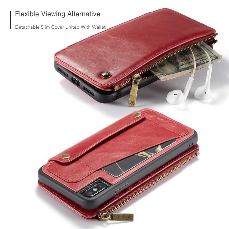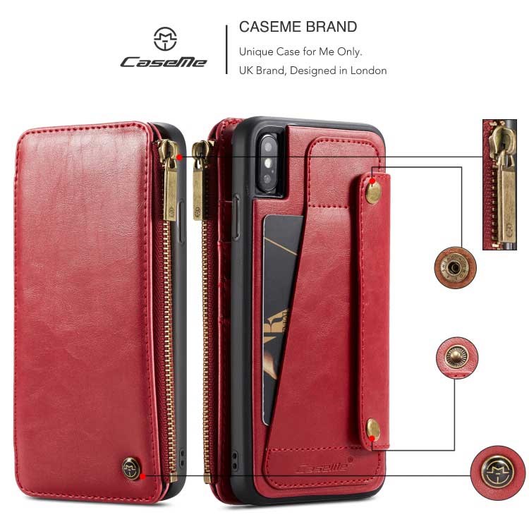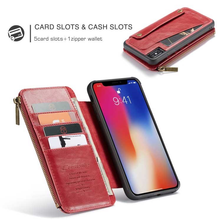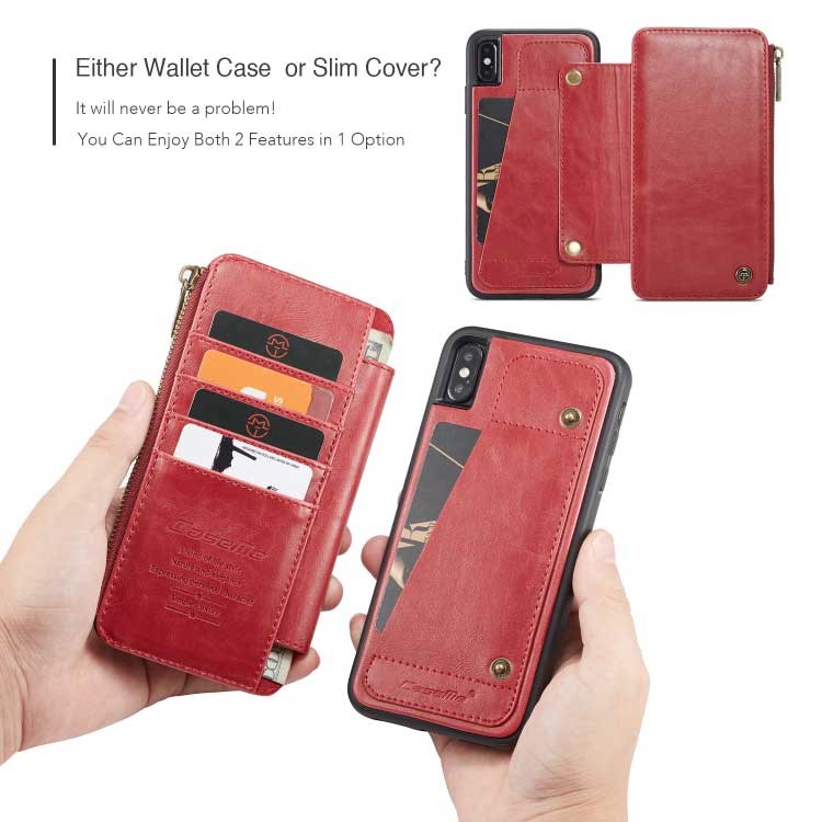 Multifunctionele CaseMe lederen portemonnee hoesje voor iPhone XS Max - Rood