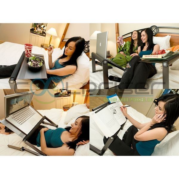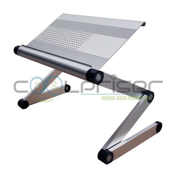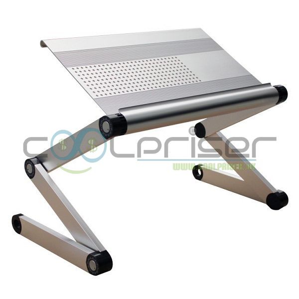 Deze unieke verstelbare aluminium laptoptafel is de perfecte oplossing om je laptop op je bureau te plaatsen. U kunt ervoor kiezen om de Laptoptafel te gebruiken als bedlade of wanneer u wilt surfen op het web. Mogelijkheid van verschillende werkhoeken.