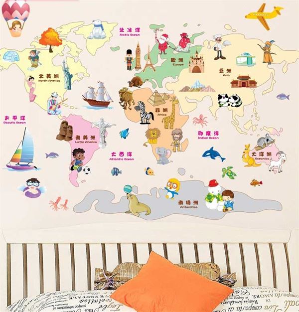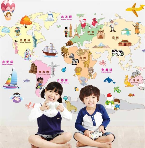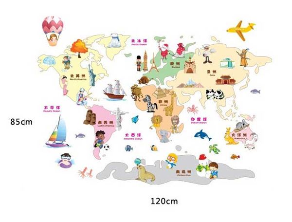 Muurstickers - Cartoon Wereldkaart - 85 x 120 cm