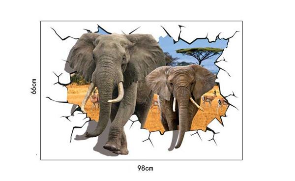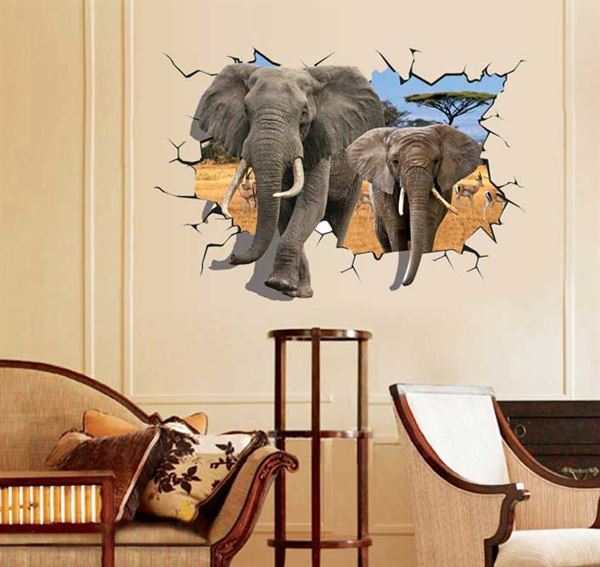 Muurstickers - Olifant 3D - 66 x 98 cm