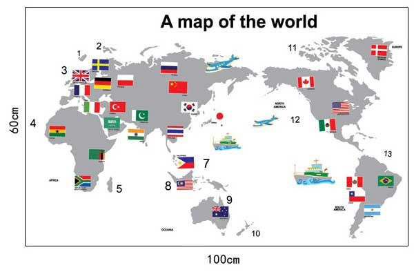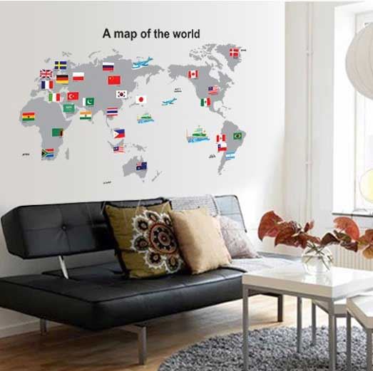 Muurstickers - Wereldkaart - 60 x 100 cm