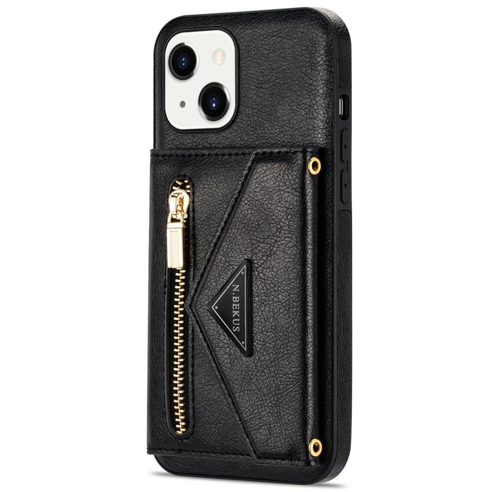 N.BEKUS voor iPhone 13 lange lanyard anti-val portemonnee PU-leer + TPU mobiele telefoonhoes met ondersteuning