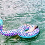 Groot opblaasbaar baddier - hier in de vorm van een badring met staart en zwemvinnen.