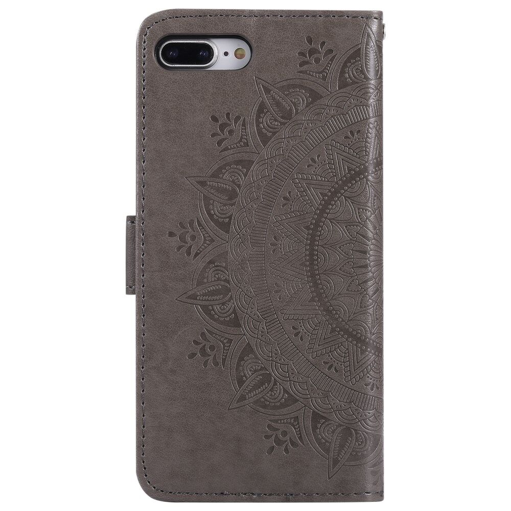 Imprint Flower Leren Portemonnee Telefoonhoesje voor iPhone 8/7 Plus 5.5 inch - Grijs