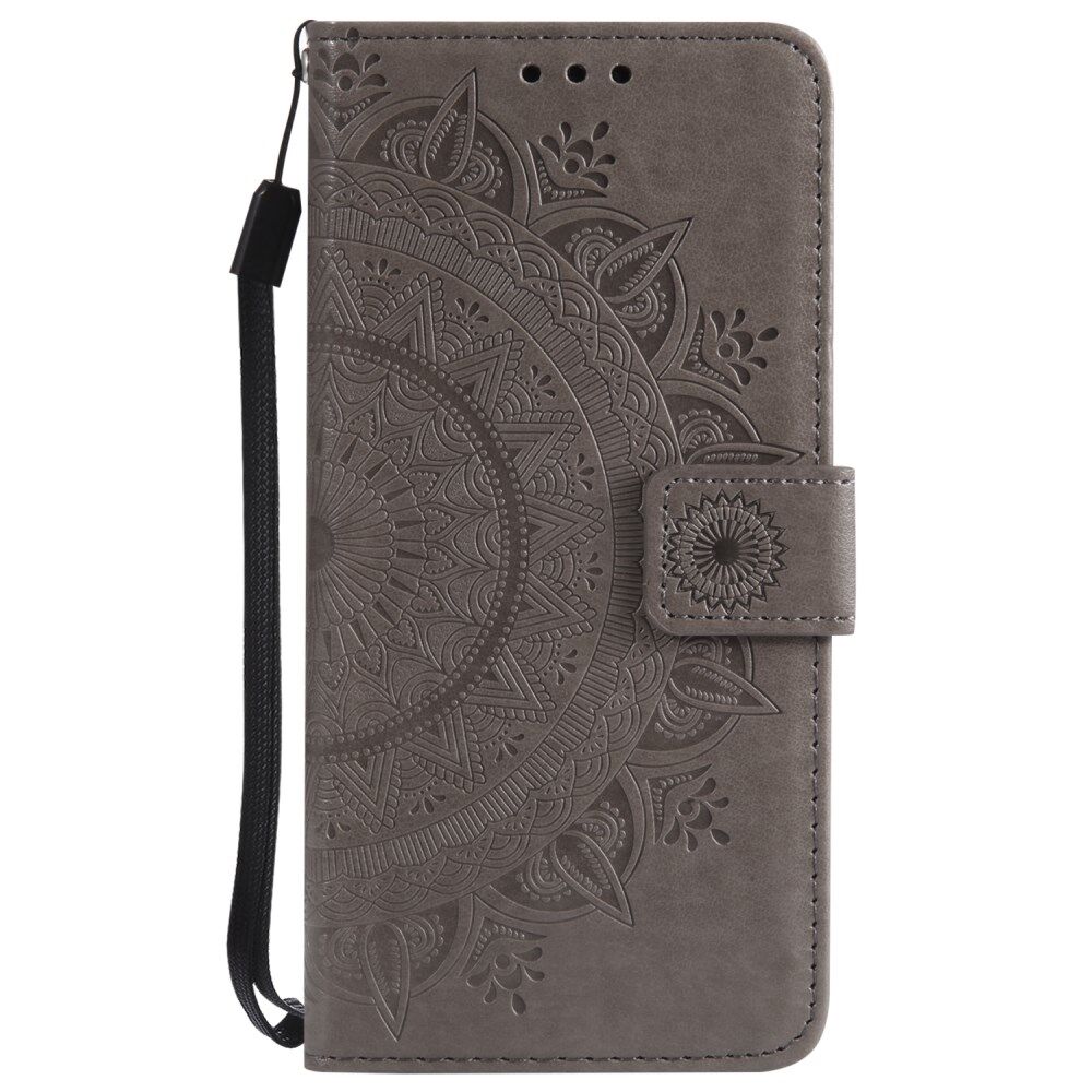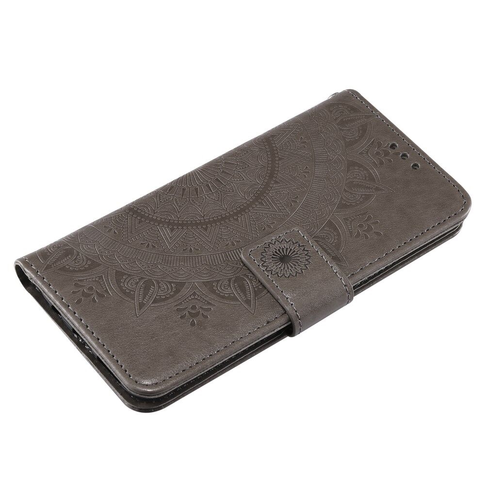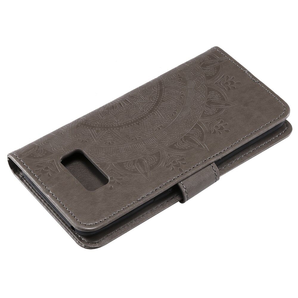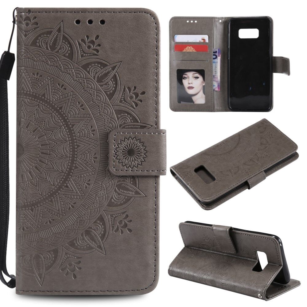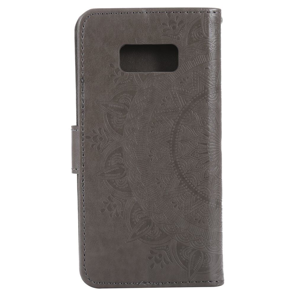 Imprint Flower Magnetisch Leren Portemonnee Hoesje voor Samsung Galaxy S8 SM-G950 - Grijs