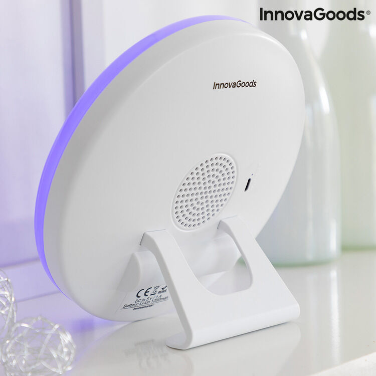 De wekker met zonsopgangseffect van Slockar InnovaGoods biedt eindeloze mogelijkheden, want hij heeft een bluetooth-luidspreker en verschillende verlichtings- en geluidsopties om elke dag wakker te worden en zo een heel bijzondere en aangename sfeer te creëren. Dankzij de simulatie van de zonsopgang en de vooraf ingestelde geluiden bevordert deze originele wekker een toestand van ontspanning en verbondenheid met de natuur, voor een langzamer en aangenamer ontwaken.