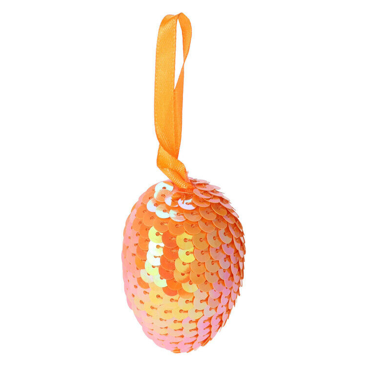 6 paaseihangers met pailletten, in verschillende kleuren. Inclusief lint.