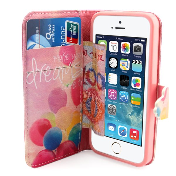 Hoesje met een design waardoor je je jeugdherinneringen vasthoudt. Het hoesje is gemaakt van imitatieleer en beschermt je gehele iPhone 5/5s/SE, en kan pasjes in kwijt.