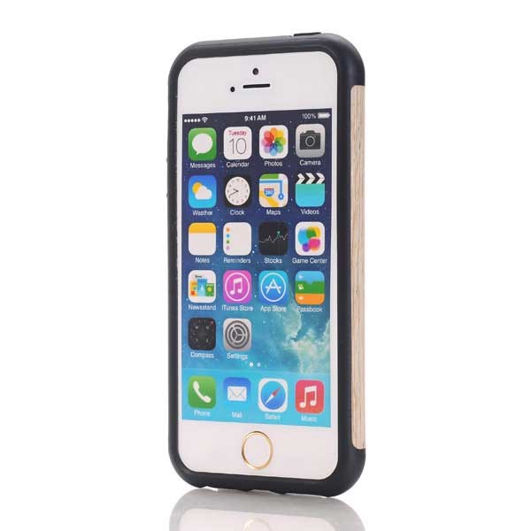 Premium hoes met houtlook in siliconen iPhone 5 / iPhone 5S / iPhone SE 2013 wit