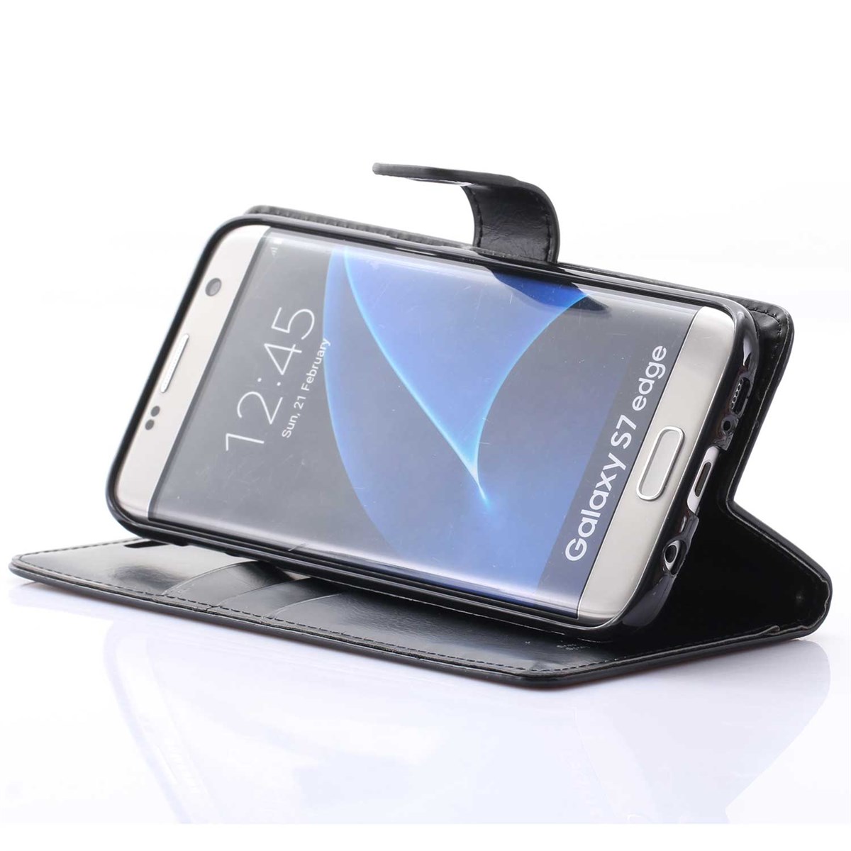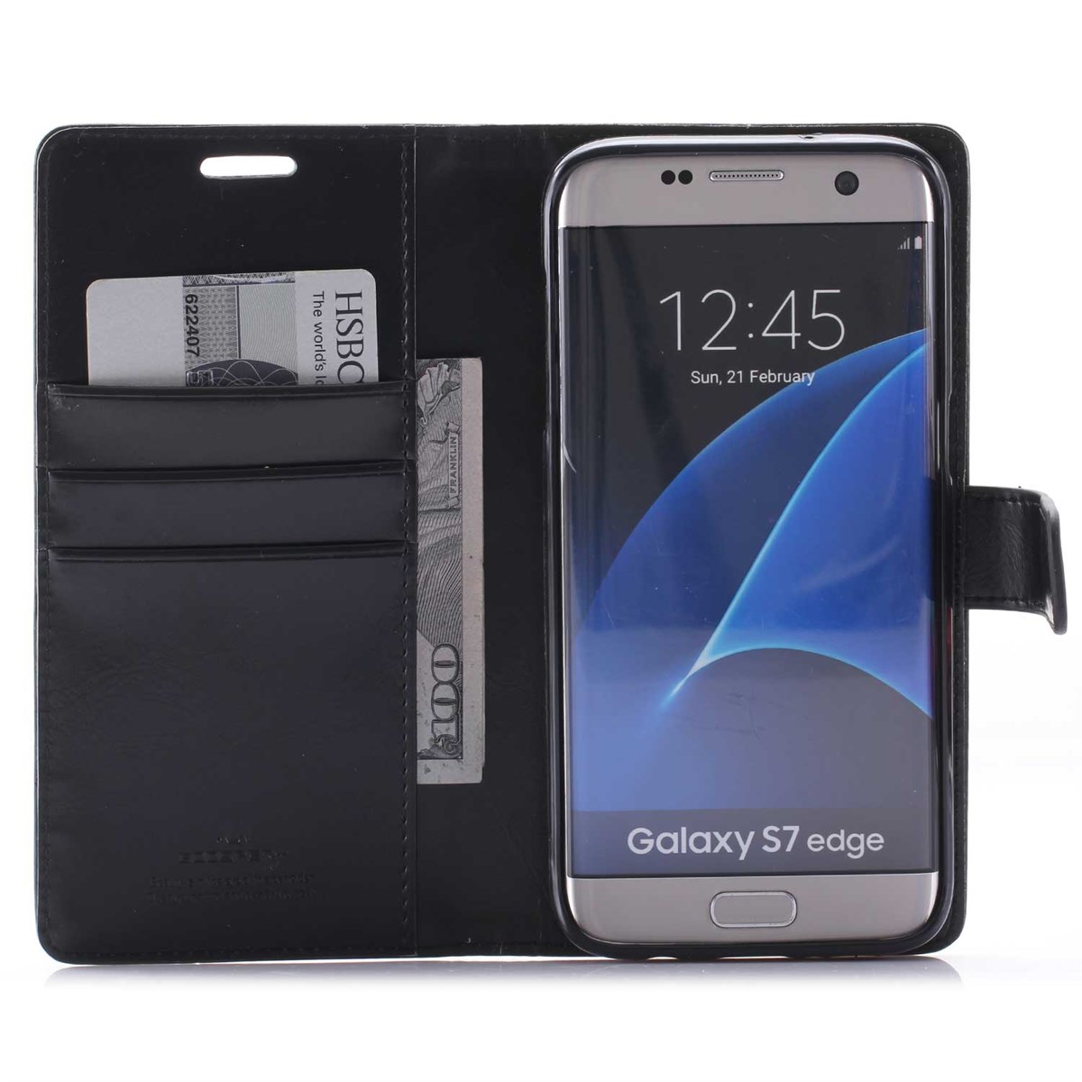 Premium Mercy leren hoesje Galaxy S7 Edge M. Creditcard zwart