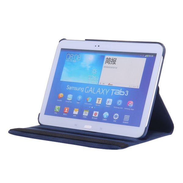 PRIJSOORLOG - DK\'s goedkoopste roterende lederen tas - Galaxy Tab 3 10.1 (donkerblauw)