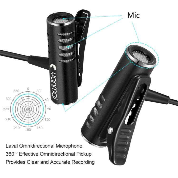 1 x professionele clip-on microfoon met 6 m kabel voor smartphone en camera
