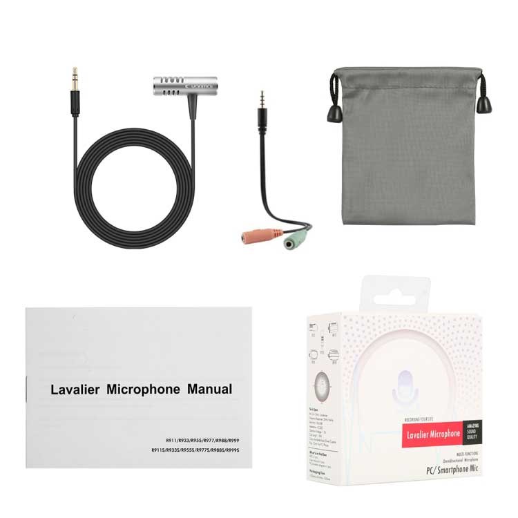 Professionele lavalier-microfoon met 1,8 m kabel voor smartphone en pc