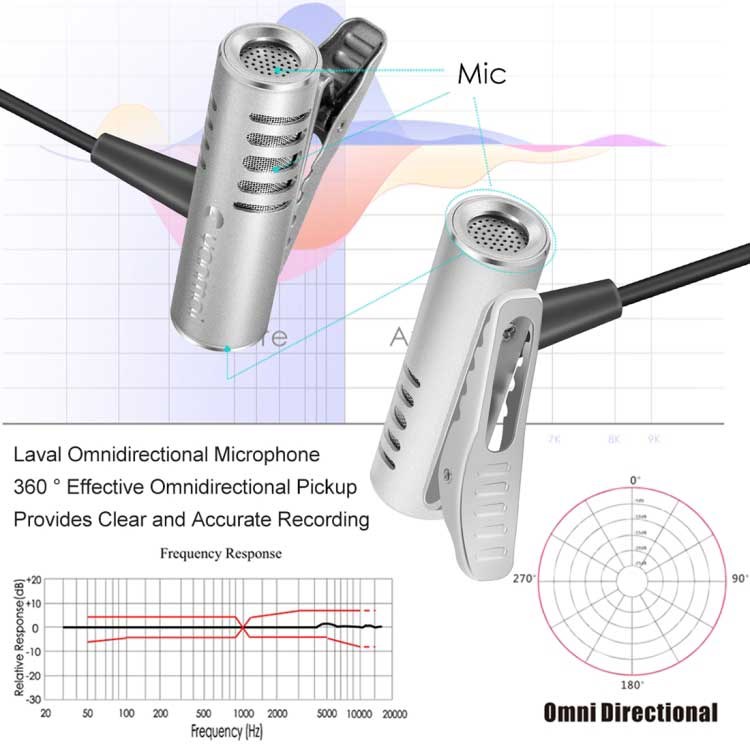 Deze omni-directionele condensatormicrofoon meet 36 x 10 mm en is ideaal voor interviews, video-audio-opnames en andere opnames.