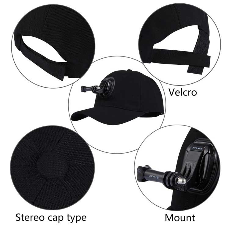 Jij krijgt PULUZ® Baseball Cap met Houder voor GoPro - Zwart
