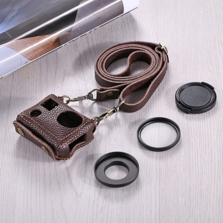 Het pakket bevat 1 x PULUZ®-tas van leer met 40,5 mm UV-lens voor GoPro HERO4 - zwart