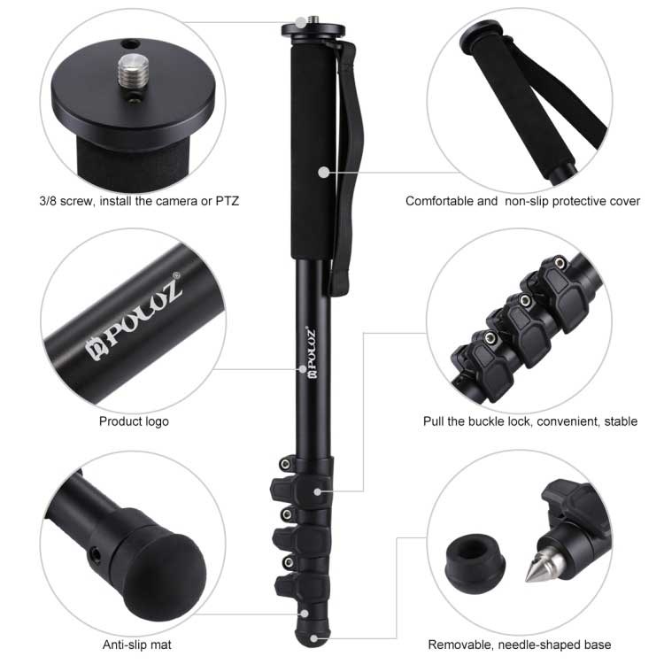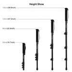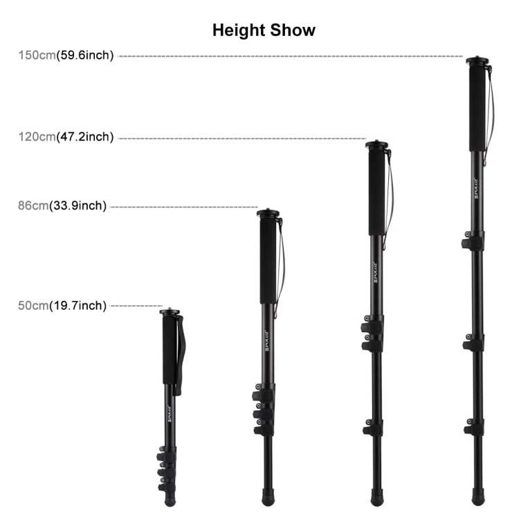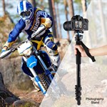 Telescopische Monopod met een hoogte van 50-150 cm en een comfortabele handgreep zodat u lang kunt fotograferen en perfecte foto's kunt maken vanuit veel verschillende posities.