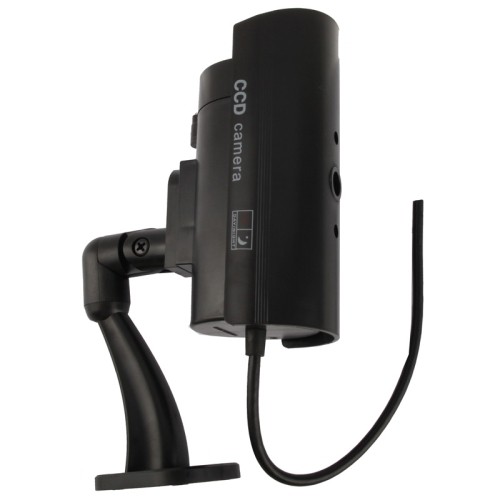 Knipperende LED's en realistische draden laten het eruit zien als een echte beveiligingscamera