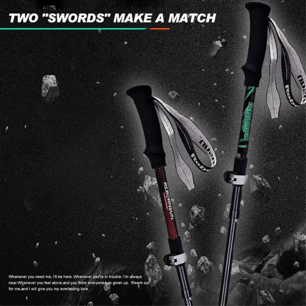 REBORNSUN RBZDGR1017 Koolstofvezel Mountain Trekking-stokken Anti-shock Lichtgewicht opvouwbare wandelen Wandelstokken