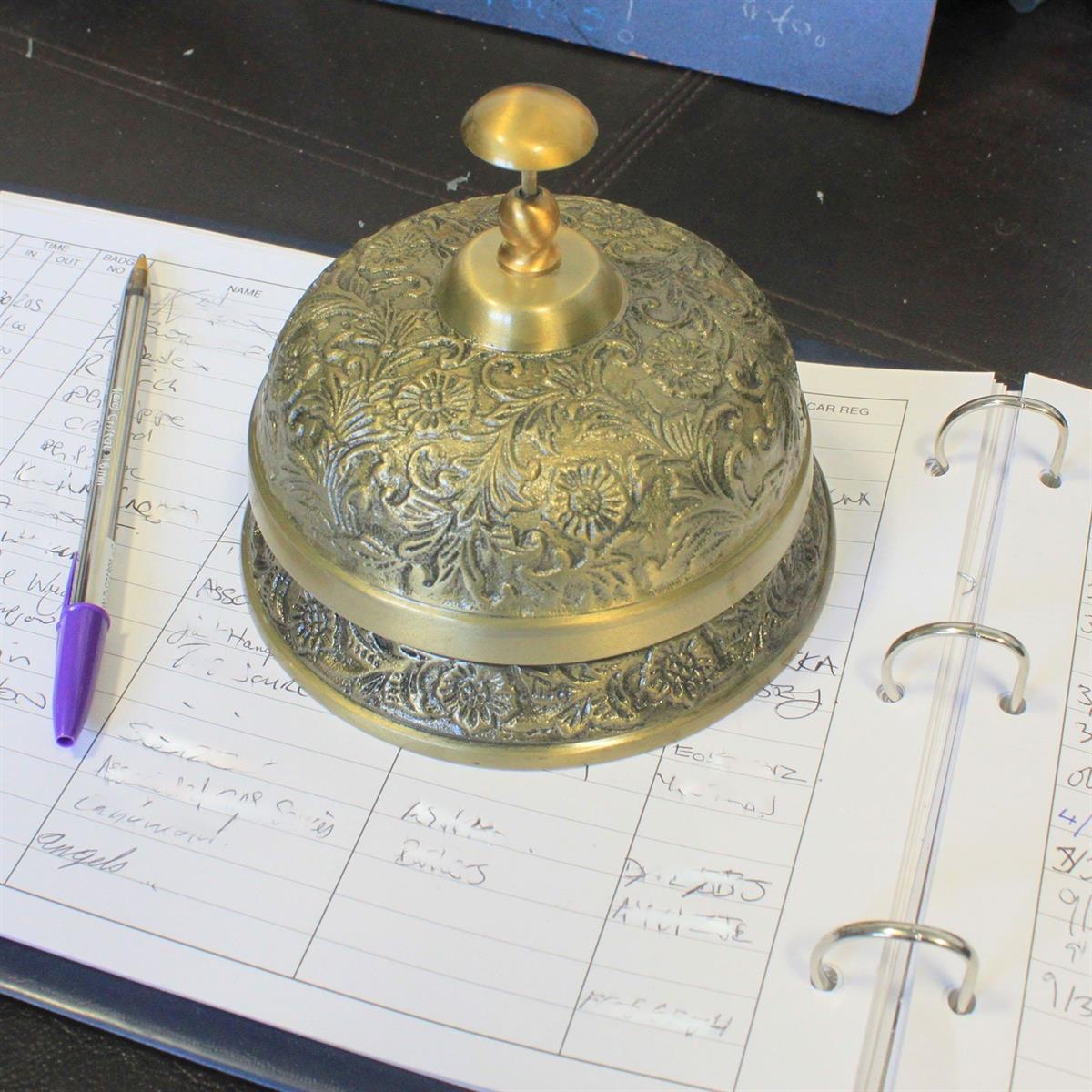 Laat uw klanten uw aandacht trekken met deze klassieke hotelreceptiebel in vintage stijl.