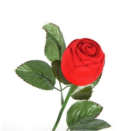 De roos heeft de vorm van een doosje waar een trouwring of verlovingsring in kan.