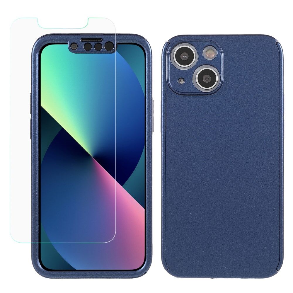 Rubberen 2-in-1 Hard Cover inclusief Tempered Glass voor iPhone 13 - Blauw