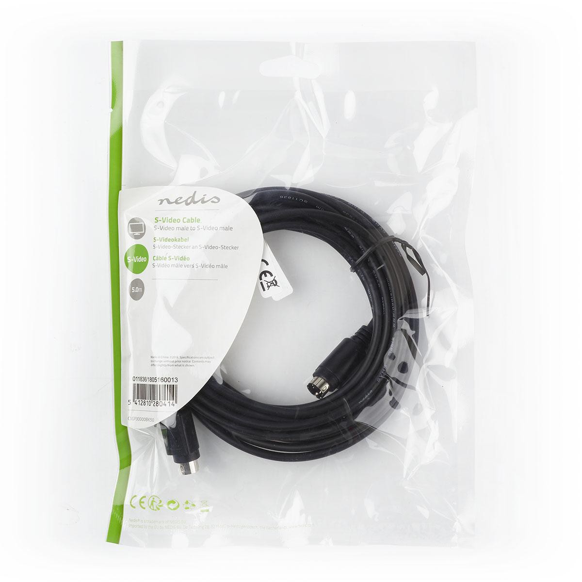 S-Video-kabel | S-Video Hij | S-Video Hij | Vernikkeld | 480i | 5.00 meter | Ronde | Pvc | Zwart | Plastieken zak