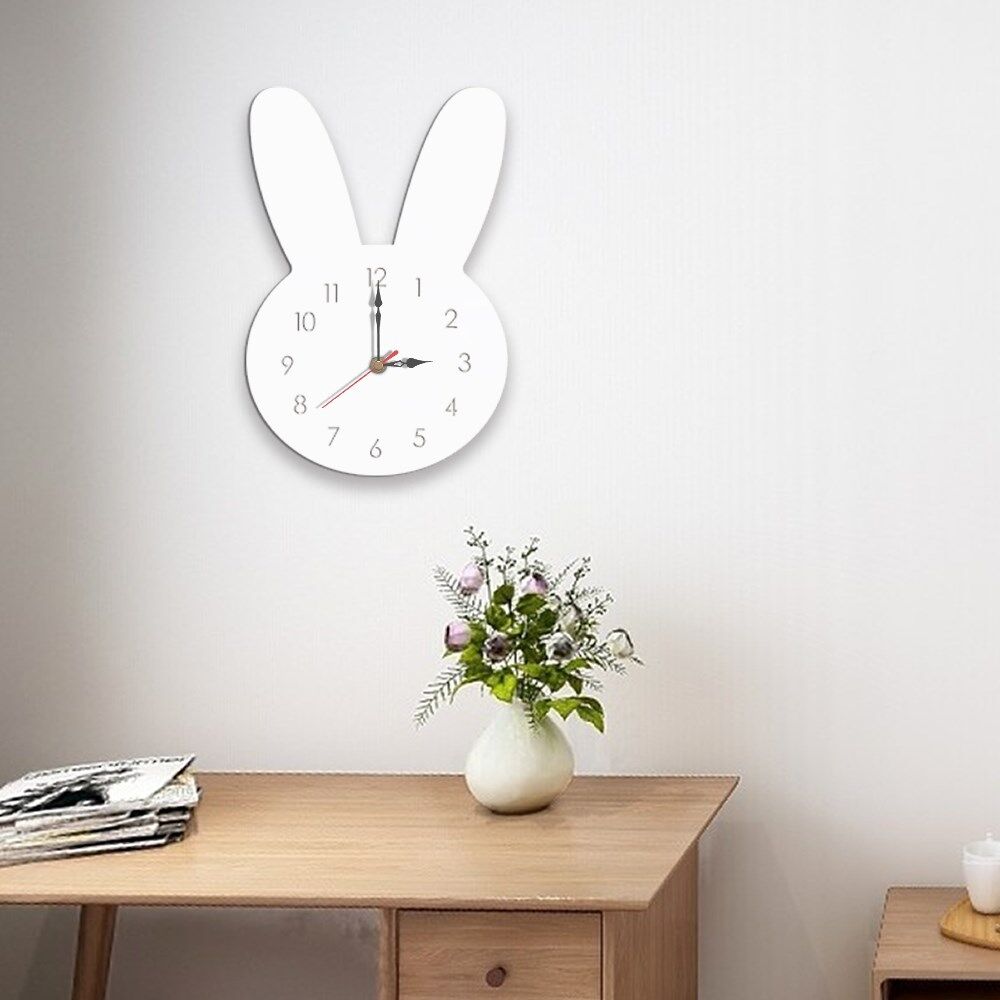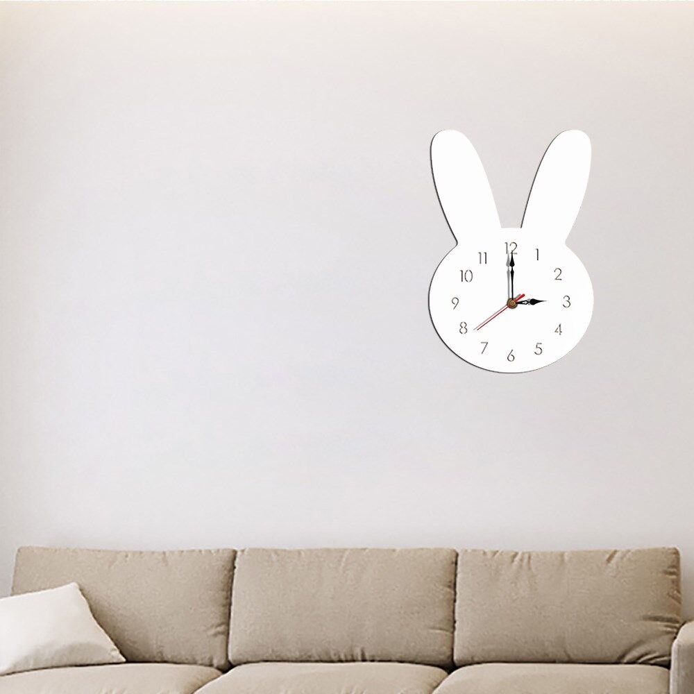 Schattige Konijn Decoratieve Kwarts Wandklok Batterij-aangedreven Stille Klok voor Woonkamer Slaapkamer - Wit