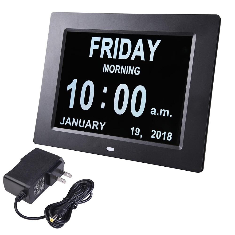 Deze unieke 8-inch digitale wekker met hoge resolutie kan duidelijk de tijd, dag van de week, alle dagen van een week, maand en datum van de week weergeven zonder verwarrende afkortingen.