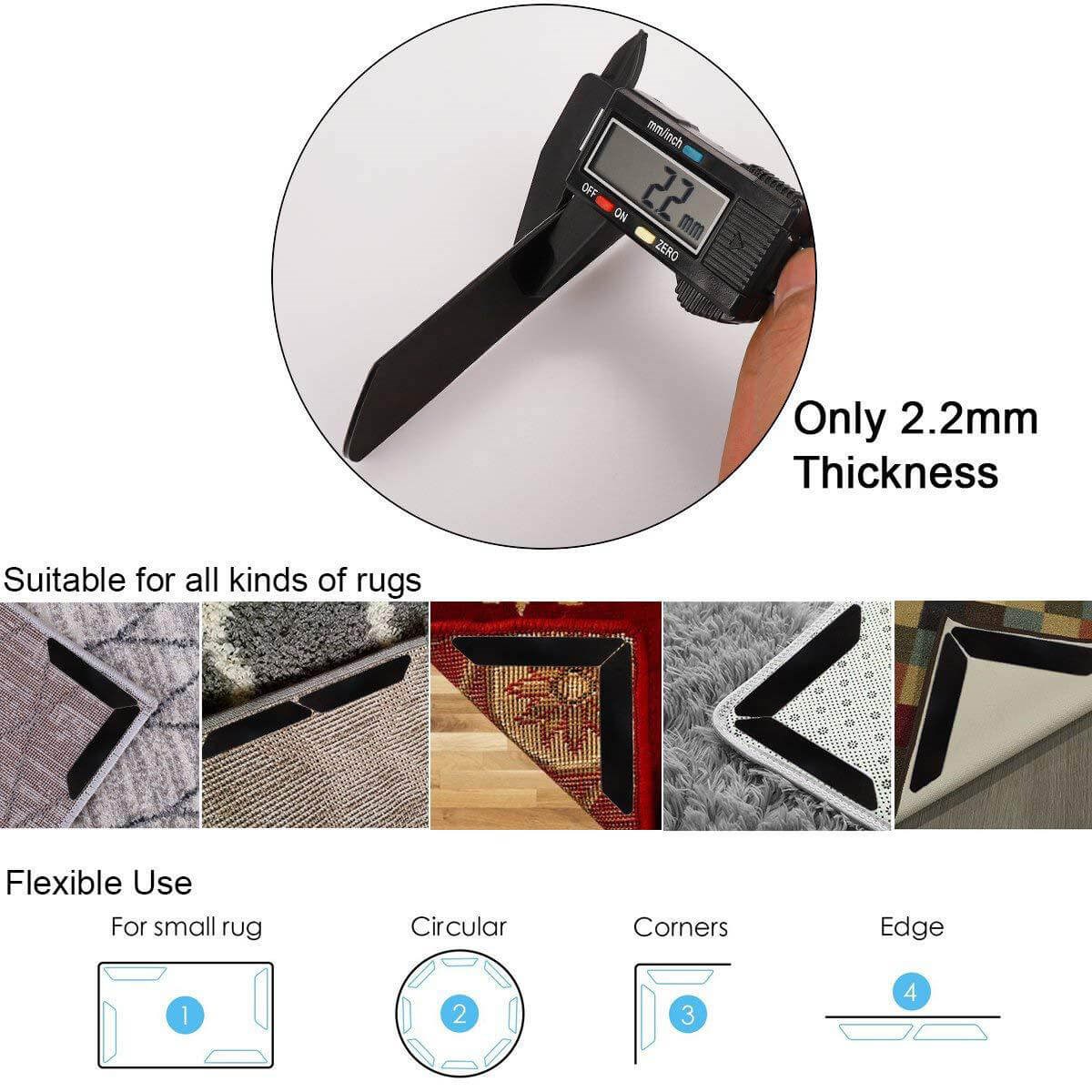 Siliconen antislip tapijtbevestigingen Veilige stickers voor deurmatten en buitentapijten - afmetingen: 25 x 135 x 2 mm - 8 stuks. Voorkom dat uw tapijt wegglijdt.