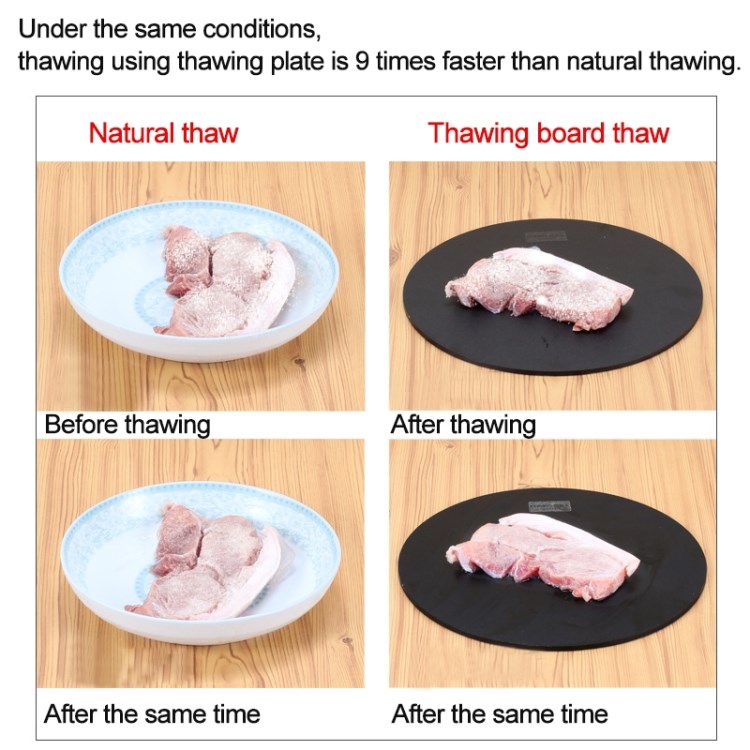 De hoge, ingebouwde thermische geleidbaarheid van de ontdooibak verkort de ontdooitijd van het voedsel tot 4 keer, zonder het gebruik van elektriciteit, magnetron of chemicaliën.