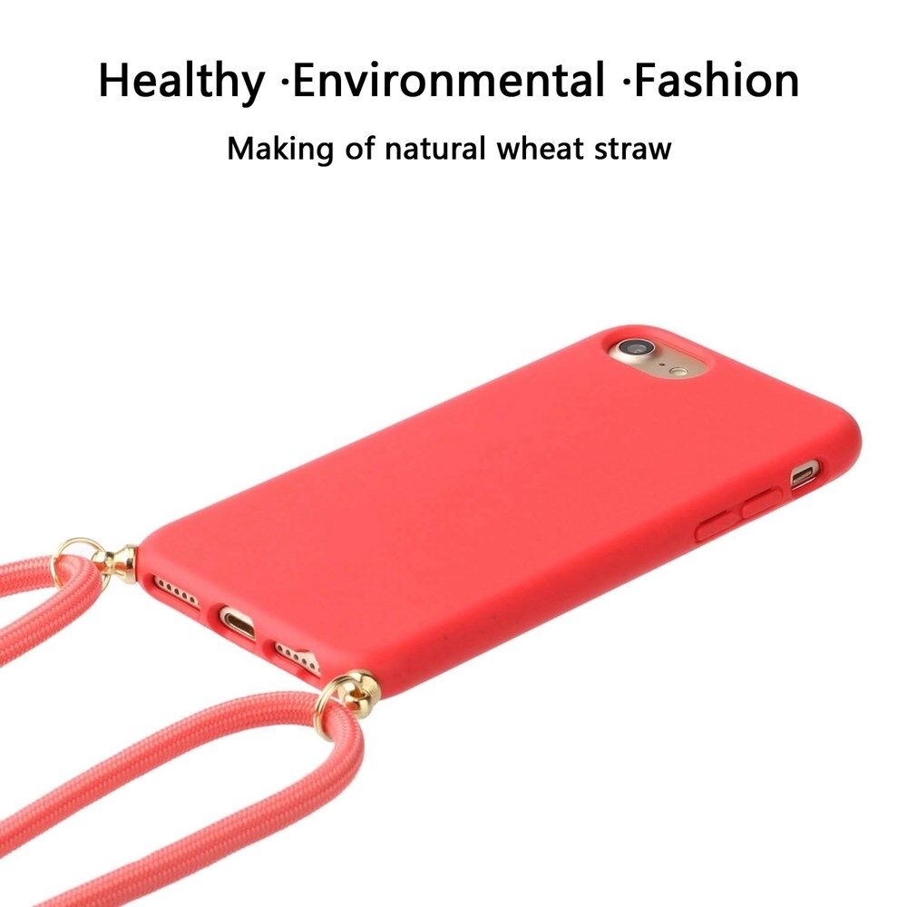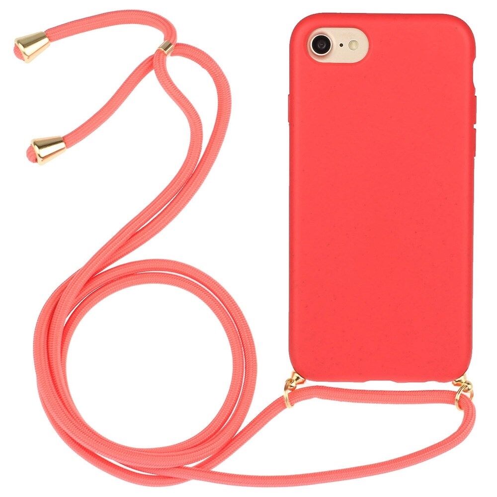 Soft Surface telefoonhoes voor iPhone 7/8/SE (2020)/SE (2022) 4,7 inch, tarwestro + flexibel TPU-hoesje met draagkoord - rood