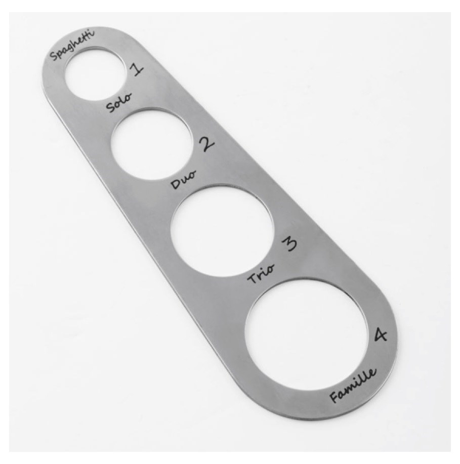 Dan is een spaghettimeter de oplossing. Een slim ontwerp in RVS waarmee je gemakkelijk porties afmeet voor 1-2-3-4 personen.