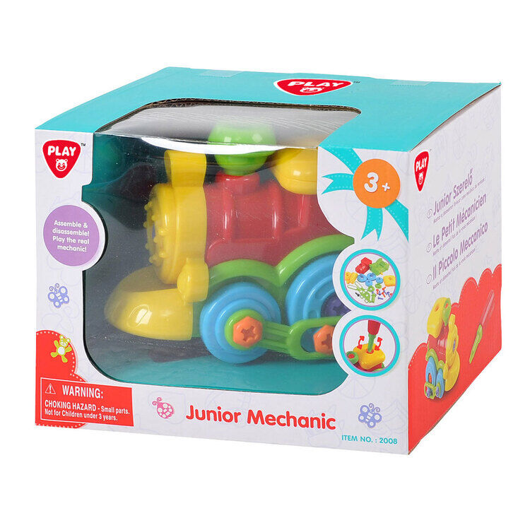 Repareer de trein met deze bouwset van Play. Gebruik de schroevendraaier om de verschillende onderdelen van de locomotief uit elkaar te halen en monteer vervolgens de trein van de grond af! De felgekleurde onderdelen en grote schroeven zijn perfect voor kleine kinderhanden. De set is gemaakt van stevig kunststof en wordt geleverd met een schroevendraaier.