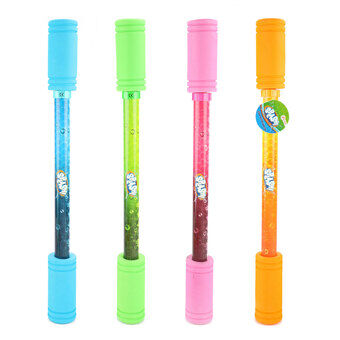 Dankzij deze gekleurde waterspuit gemaakt van schuim ben je klaar voor een watergevecht! Zuig het water op en spuit het dan zo hard mogelijk eruit. Heers over het zwembad! De waterspuit heeft een lengte van 55 centimeter.