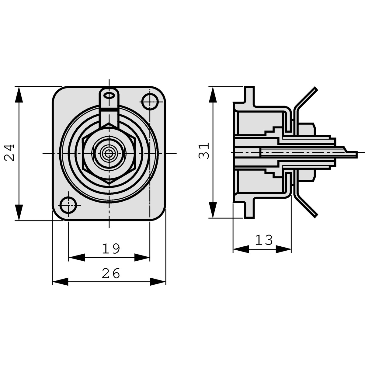 2-polig, soldeeraansluiting geïsoleerd van de behuizing