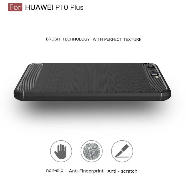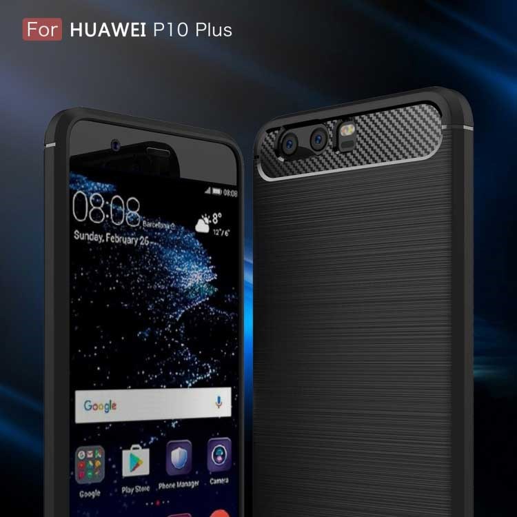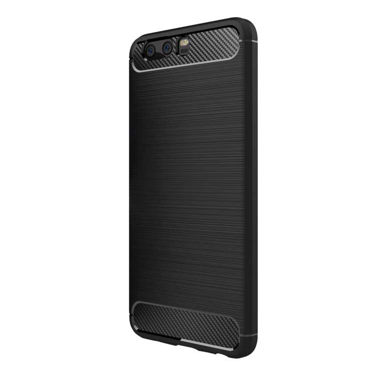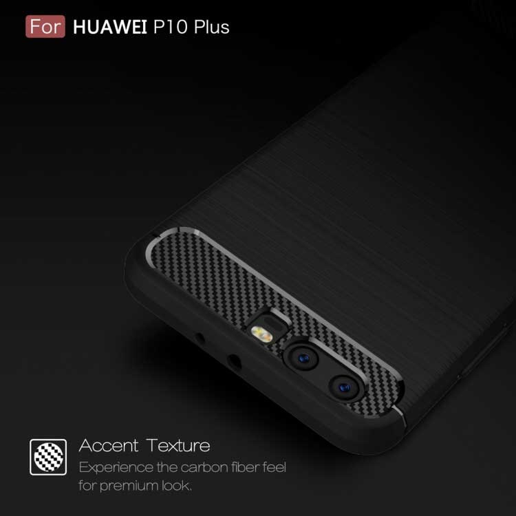 Style Brushed Cover in zacht TPU en Carbon voor Huawei P10 Plus - Zwart