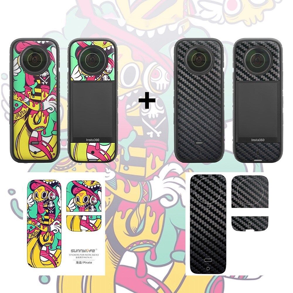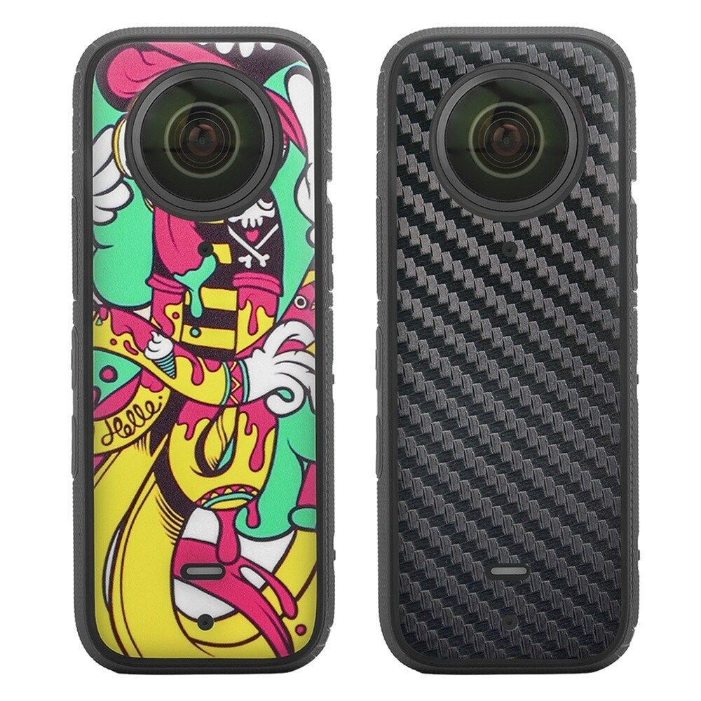 SUNNYLIFE IST-TZ485 Voor Insta360 X3 Lijm Leuke Patroon PVC Sticker Set Decoratie Camera Accessoires Kit- Hip/Koolstofvezel