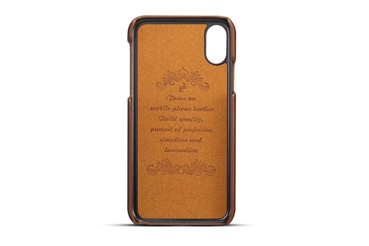 De hoes is gemaakt van PU-leer met een kaarthouder aan de achterkant en een kunststof inzetstuk voor de iPhone.