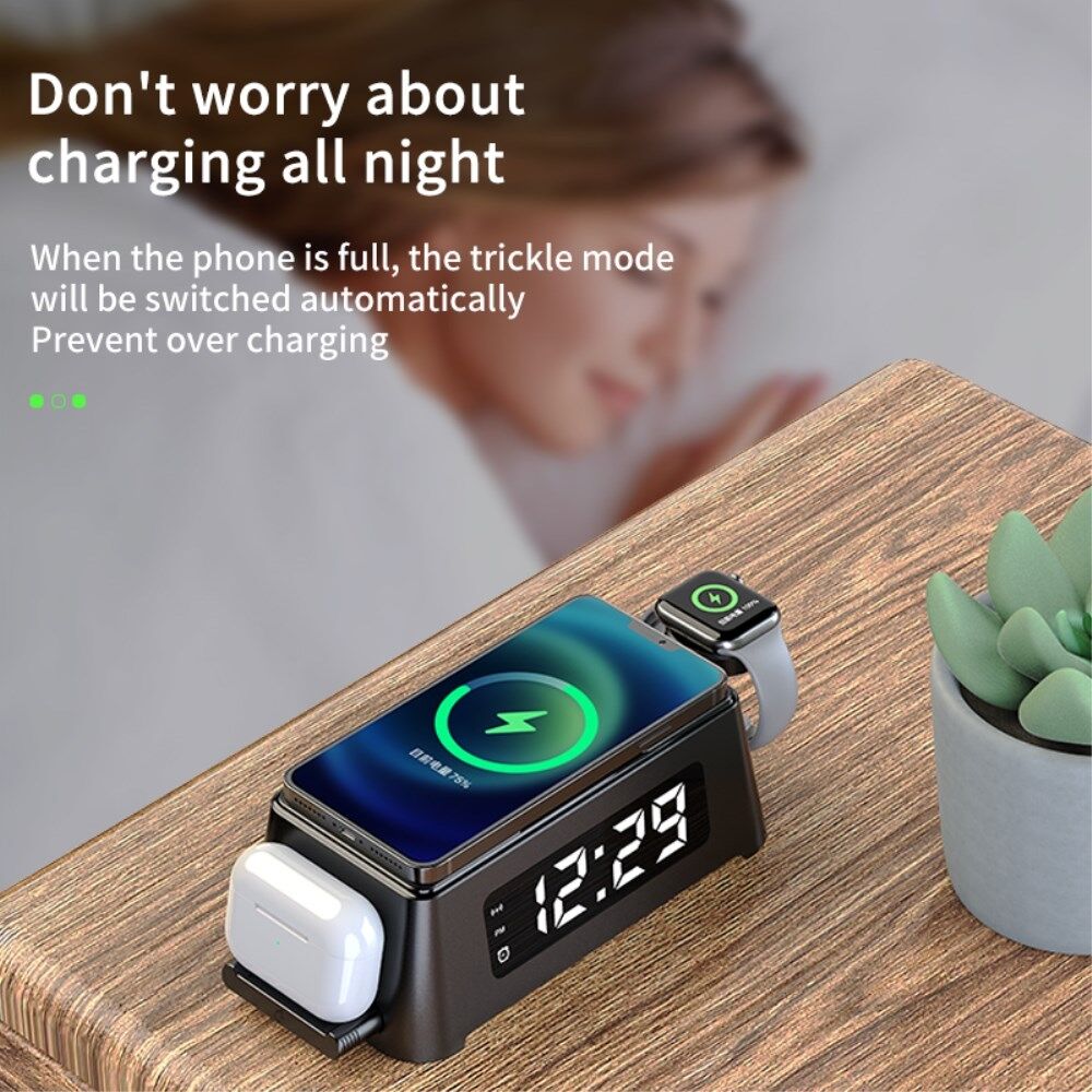 • 4-in-1 functie, wekker, telefoon/horloge/handset draadloze oplader