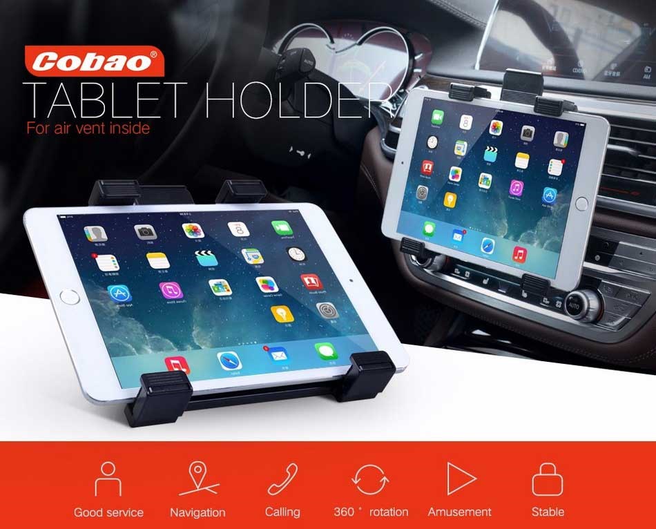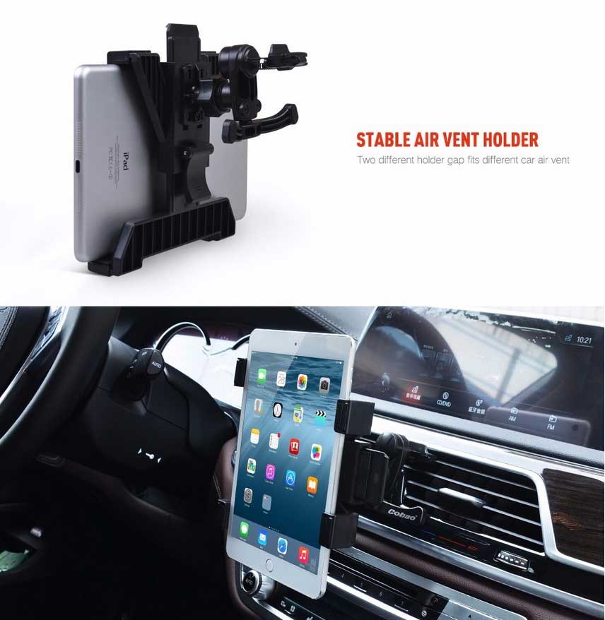 Nu kunt u gemakkelijk uw iPad in de auto hebben. Je kunt naar je favoriete muziek luisteren, communiceren met je vrienden of je weg vinden in de grote wereld. De autohouder is eenvoudig te bevestigen aan de luchtkanalen van de auto en past op iPad en tablet in de maat 7-11".