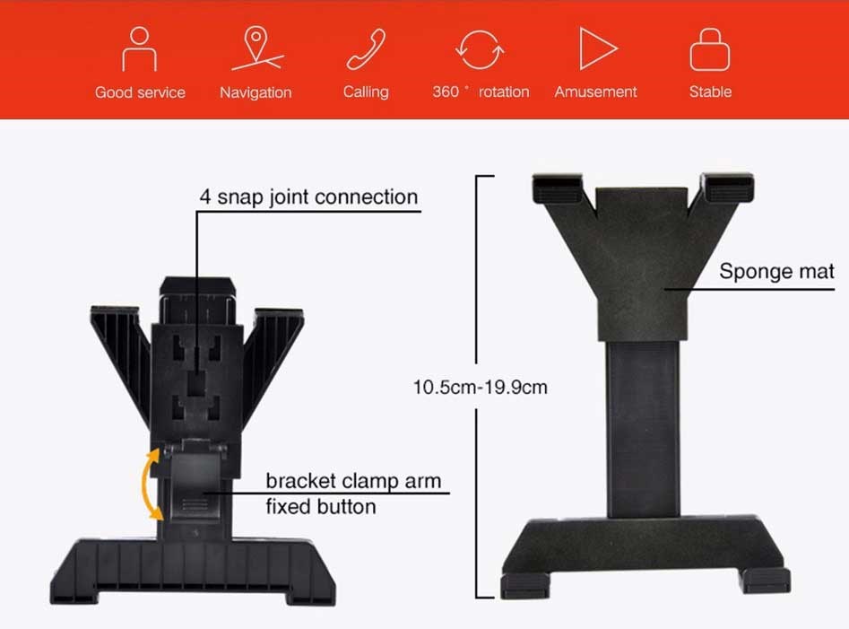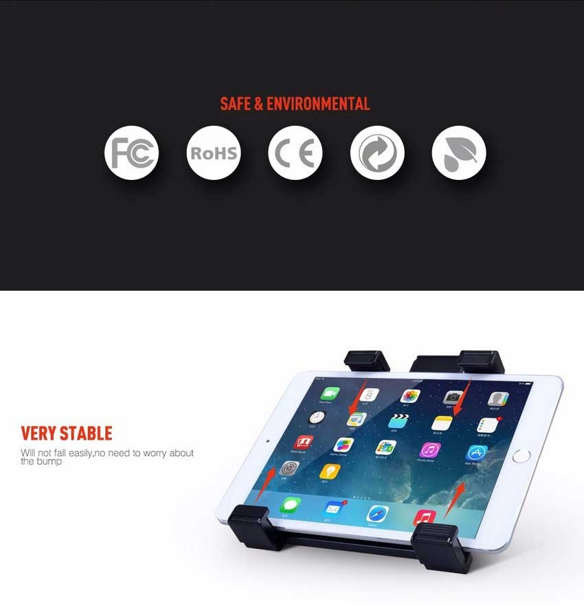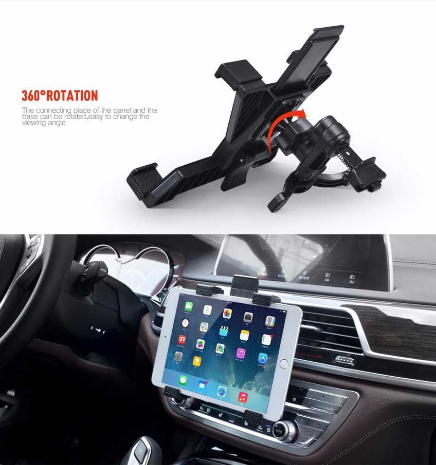 De vier handvatten zorgen voor een stabiele en veilige bevestiging, waardoor je tablet vast komt te zitten bij het rijden over hobbels of hard remmen. De autohouder kan 360º draaien en je medepassagier kan tijdens het rijden kijken of zich vermaken met een goede film.