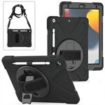 Handband Ontwerp Tablet Cover met 360 Graden Draaibare Standaard & Schouderriem voor iPad 10.2 (2021)/(2020)/(2019) - Zwart