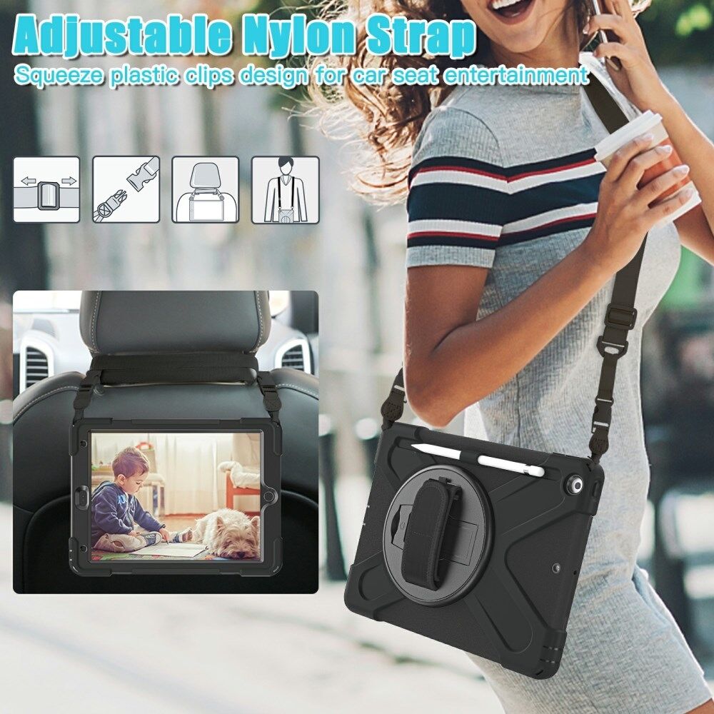 Tablethoes met handband en 360 graden draaibare standaard en schouderriem voor iPad 10.2 (2021)/(2020)/(2019)