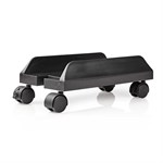 De standaard kan zowel op tafel als op de vloer worden geplaatst. Het is uitgerust met vier zwenkwielen die het gemakkelijk maken om het te verplaatsen zonder uw pc op te tillen.