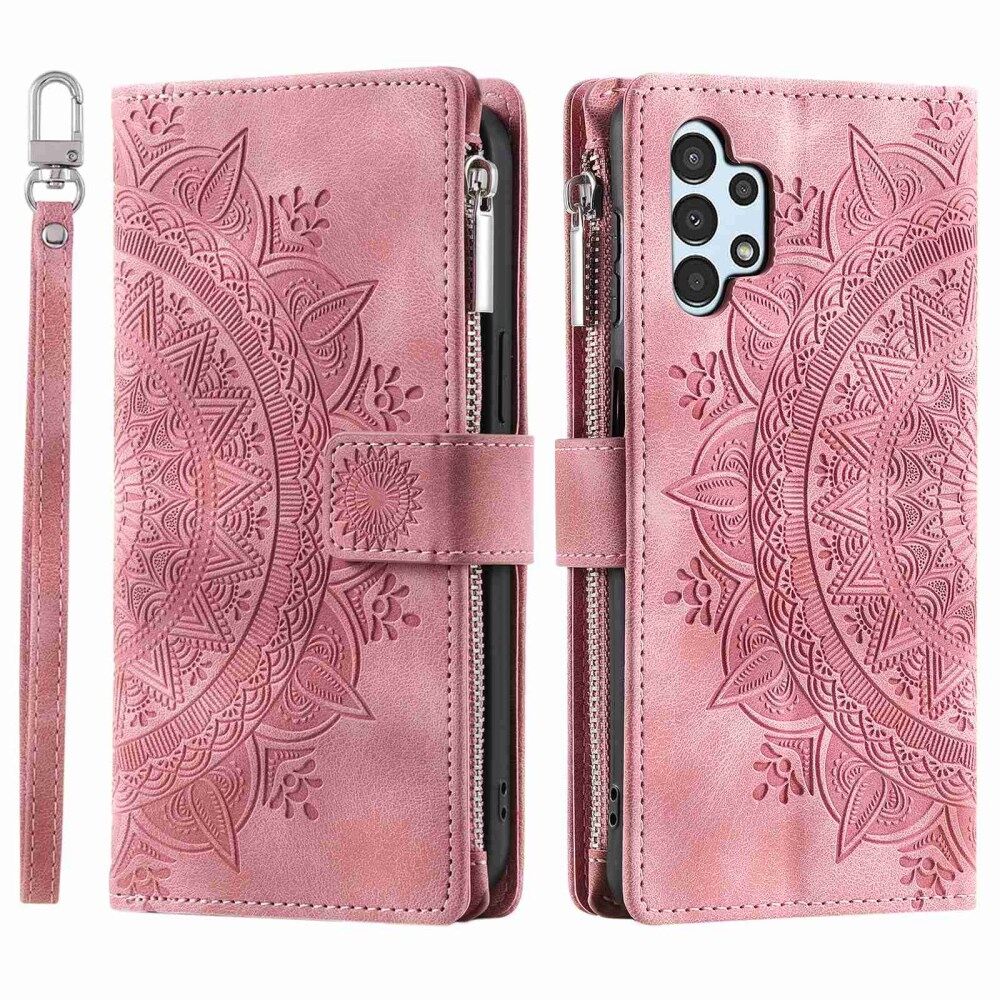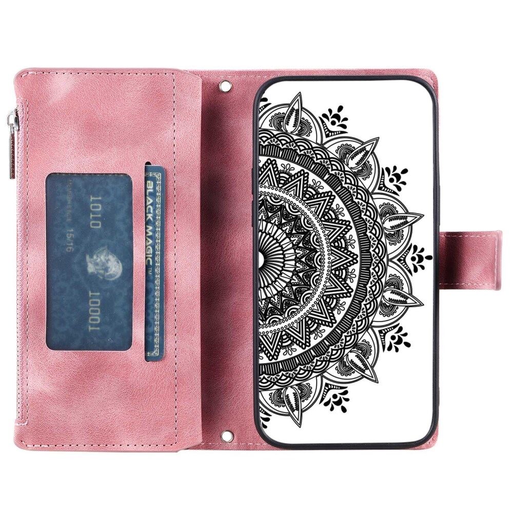Telefoon Shell voor Samsung Galaxy A32 5G / M32 5G, Mandala Flower bedrukt PU lederen hoes Stand met meerdere kaartsleuven rits portemonnee portemonnee - roze