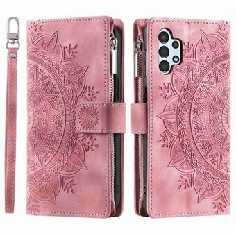 Telefoonhoes voor Samsung Galaxy A32 5G / M32 5G, PU lederen hoes met mandala-bloem bedrukt, Stand met meerdere kaartsleuven, portemonnee met ritssluiting