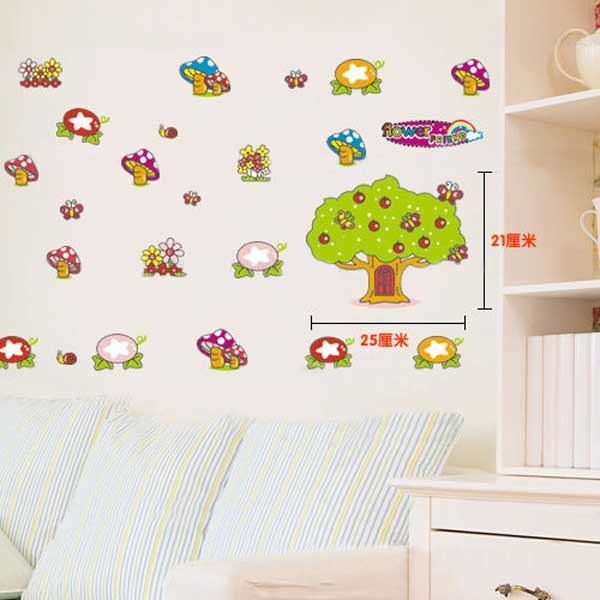 TipTop Muurstickers Cartoon Boom & Paddestoel Design
