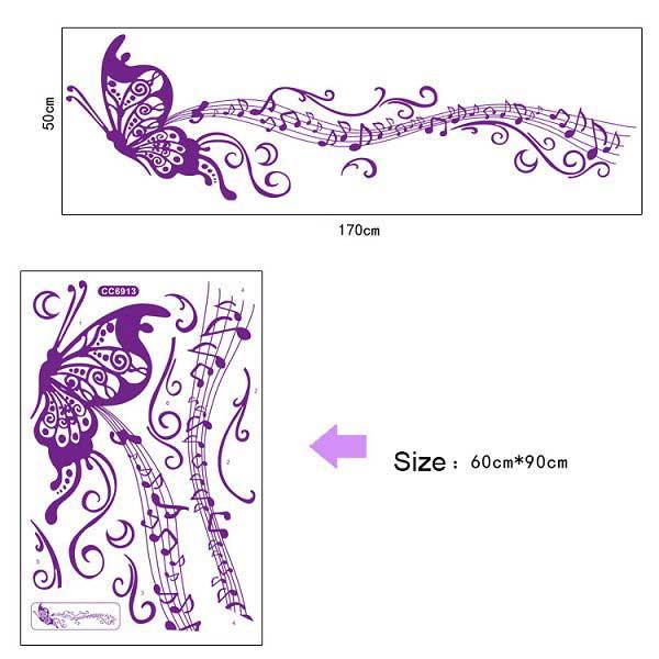 TipTop Muurstickers Purple Pretty Music Vlinderpatroon Verwijderbaar