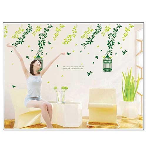 TipTop Muurstickers Vogelkooien en Groene Wijnstok